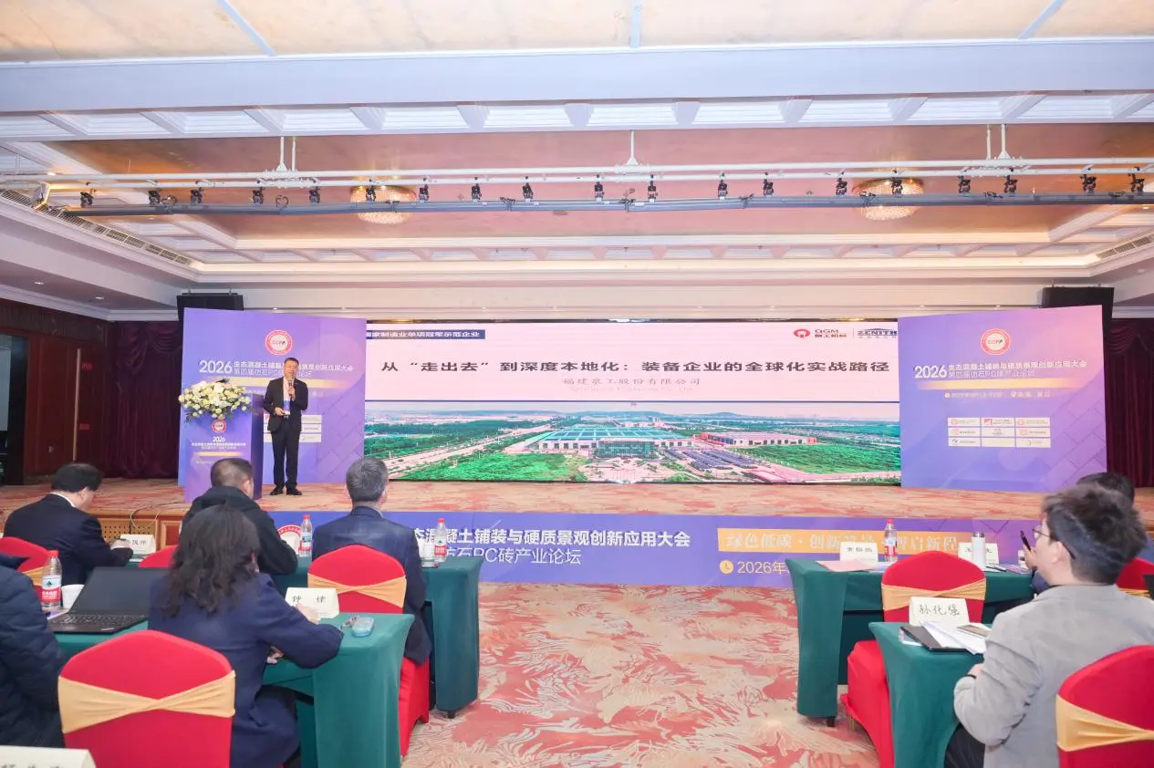 13 से 15 मार्च तक, इमिटेशन-स्टोन पीसी ईंटों पर चौथे उद्योग फोरम के साथ-साथ पारिस्थितिक कंक्रीट पेविंग और हार्डस्केप के अभिनव अनुप्रयोगों पर 2026 सम्मेलन, जिनजियांग, फ़ुज़ियान में आयोजित किया गया था। "ग्रीन एंड लो-कार्बन: इनोवेटिंग लैंडस्केप्स, इंटेलिजेंटली चार्टिंग ए न्यू कोर्स" विषय पर सम्मेलन में अनुसंधान एवं विकास, विनिर्माण, डिजाइन, निर्माण, परीक्षण और उपकरण निर्माण सहित क्षेत्रों के विशेषज्ञों, विद्वानों और कॉर्पोरेट प्रतिनिधियों को एक साथ लाया गया। साथ में, उन्होंने पारिस्थितिक कंक्रीट फ़र्श और हार्डस्केप उद्योगों के लिए नवीन विकास पथों की खोज की। फ़ुज़ियानक्वांगोंग मशीनरी कंपनी लिमिटेडको इस कार्यक्रम में भाग लेने के लिए आमंत्रित किया गया था, जहां इसने कंक्रीट उत्पाद निर्माण उपकरण के दायरे में कंपनी की तकनीकी उपलब्धियों और व्यापक सिस्टम समाधानों को प्रदर्शित करने के लिए एक प्रदर्शनी बूथ की स्थापना की।